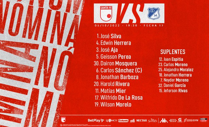 . Santa Fe está muy partido no hay. Rivera empieza amover su banco. Web De ganar Santa Fe sumaría un total de 33 unidades y con ello encendería el final del torneo colombiano a una fecha de su finalización.